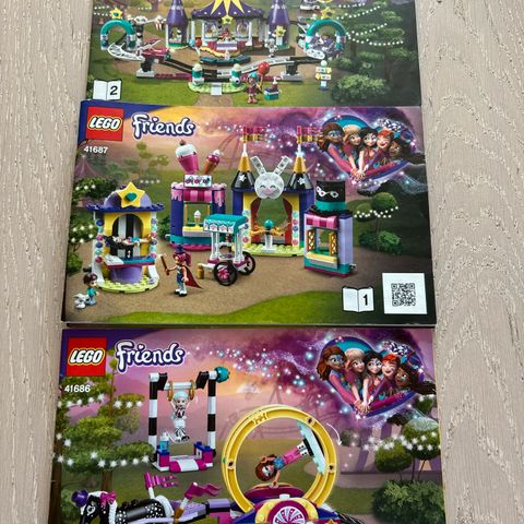 LEGO Friends Maaginen Huvipuiston Vuoristorata 41685 sisältää useita osia, jotka muodostavat huvipuiston teemaisen leikkikokonaisuuden. Sarjassa on violetteja ja vaaleanpunaisia elementtejä, mukaan lukien karuselli, lipputangot, ja erilaisia koristeita. Myydään osittain purettuna pusseihin.