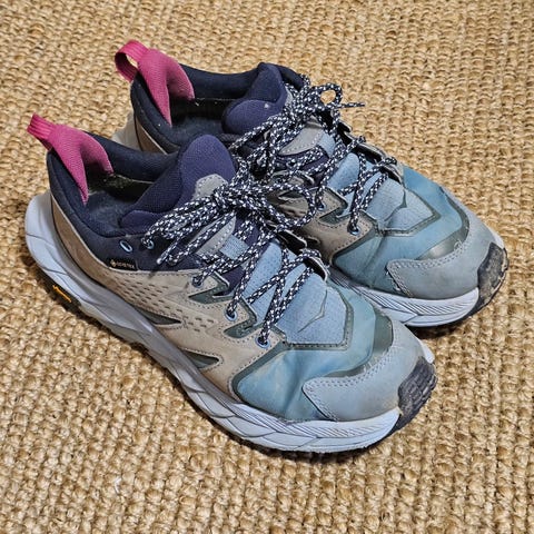 Väristä oli vaikea marraskuussa saada kuvaa, mutta kenkä oikeassa värissä sekä ominaisuudet kuvattu mm. täällä: https://varuste.net/p115186/hoka-anacapa-low-gtx-womens