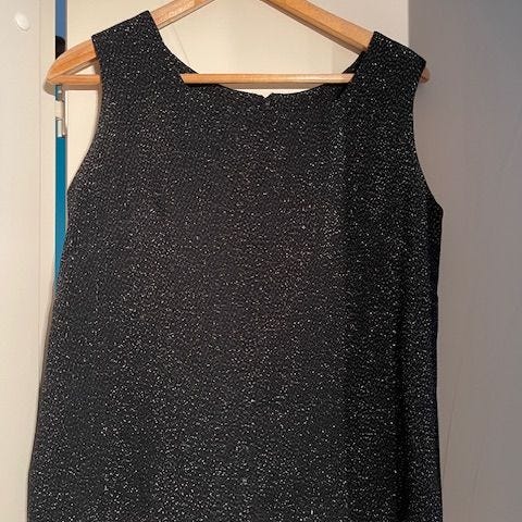 Myydään mustanharmaa, kimalteleva toppi esim pikkujouluihin, vintage, on vanha, mutta erittäin hyväkuntoinen. Takapuolella on vetoketju. Koko on 38-40. Kai-kai mitta noin 48cm.
