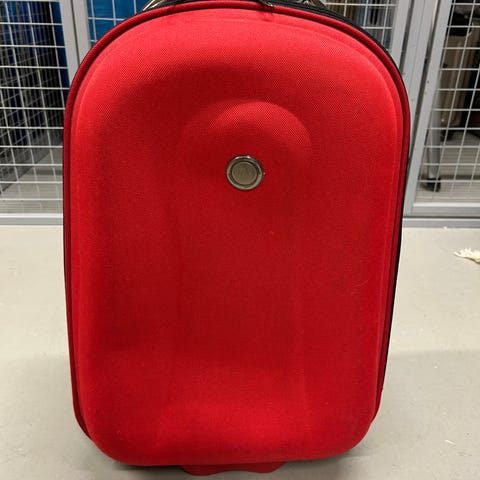 Annetaan edettävä lentolaukku. 2 rengasta. Yksi vetoketjun vedinosa puuttuu, kuten kuvasta näkyy, mutta toimii silti. Muuten mielestäni siistissä kunnossa.