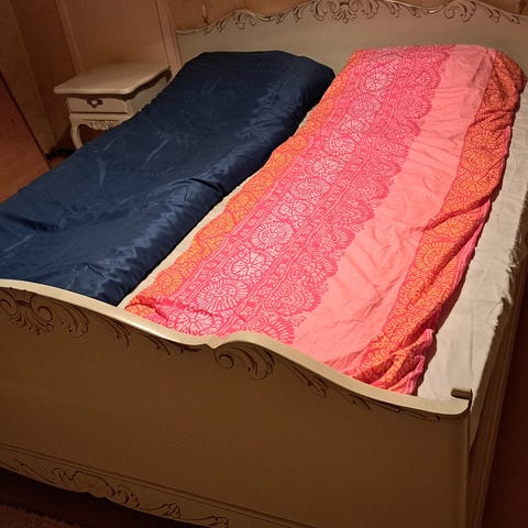 Myynnissä harvinainen vintage tyyppinen Ligne Roset sänky, pari pientä naarmua löytyy (näkyy kuvissa). Tyynyt ja yöpöydät kuuluu mukaan.