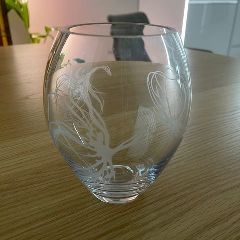 Myydään kuvassa näkyvä ehjä pieni Pentikin lasimaljakko, joka ollut lähinnä koristeena pääsiäisen aikana. Kissatalous.