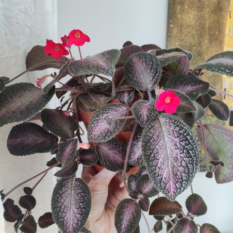 Ympäri vuoden kauniita punaisia kukkia kukkiva helppohoitoinen Hohtokuparilehti Epsicia 'Northen Lights' -pistokkaat.