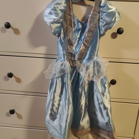 Prinsessamekko, paljon tylliä hihoissa ja helmoissa. Koko 140. Parit juhlat juhlittu.