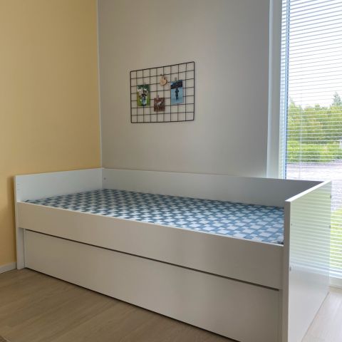 Vekeltä ostettu lastensänky patjoineen, koko 170x65. Patjan päällä käytetty suojaa ja päällinen on vasta pesty. Runko siistissä kunnossa.