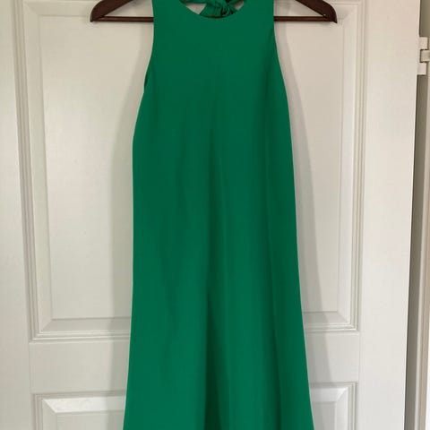 Zara juhla- tai cocktailmekko, väri vihreä, koko M mutta vastaa S-kokoa. Takana vetoketju sulkemista varten. Kauniisti laskeutuva kangas. Piilotaskut.