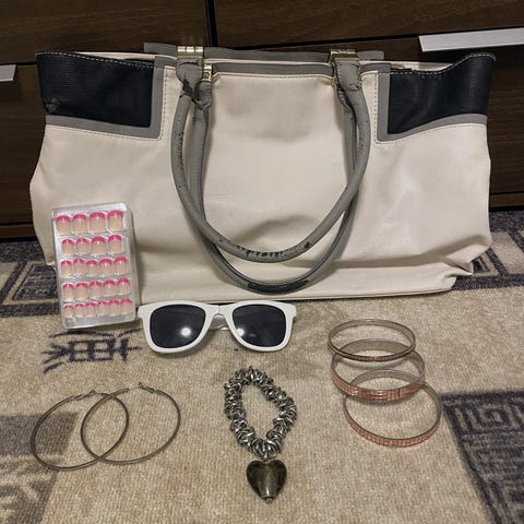 Kaikki yhteensä 20e. Settiin sisältyy: sormuksia(4kpl,erikokoisia), lei (kukat muovia) ja kaksi pikkulaukkua erinomaisessa kunnossa.