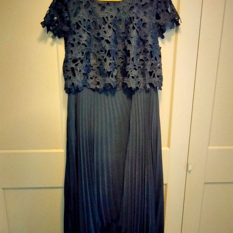 Vila ilta- tai juhlapuku sininen väri, naisten koko 40. Puku on pitkä ja valmistettu kevyestä materiaalista, jossa on koristeellinen yksityiskohta vyötärön kohdalla. Sopii erityisesti juhlakäyttöön. Uusi, laput kiinni!