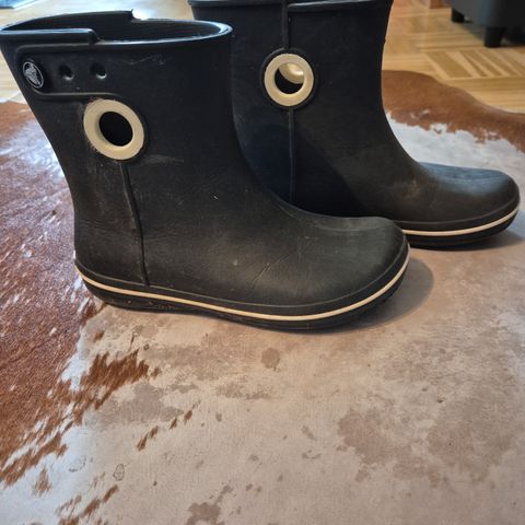 Myydään käytetyt, mutta hyvässä kunnossa olevat, mustat lasten Crocs -kumpparit kokoa W5 eli EU 34-35. Kantapää-varvas -pituus 21 cm.