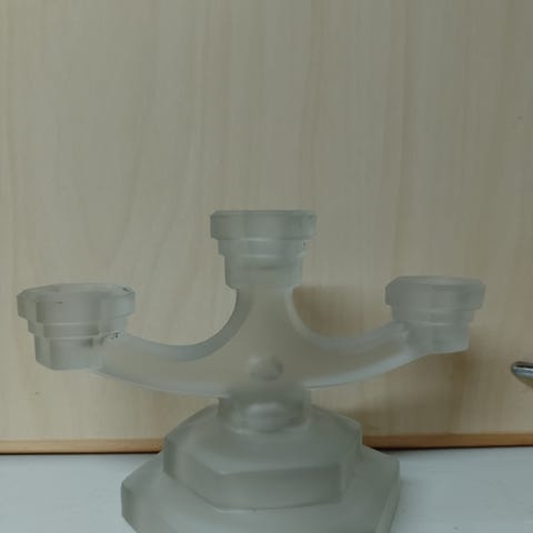 Riihimäen lasi Art Deco 3-haarainen kynttilänjalka kirkas.