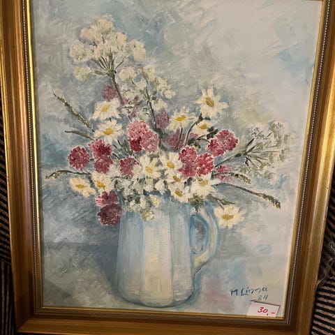 Taulu kukkakuvio kullanvärisessä kehyksessä