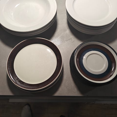 Arabian pienet lautaset, 5 kpl. Vanhat, joten pientä kulumaa ja värjäymää on, yleisilme kuitenkin siisti.