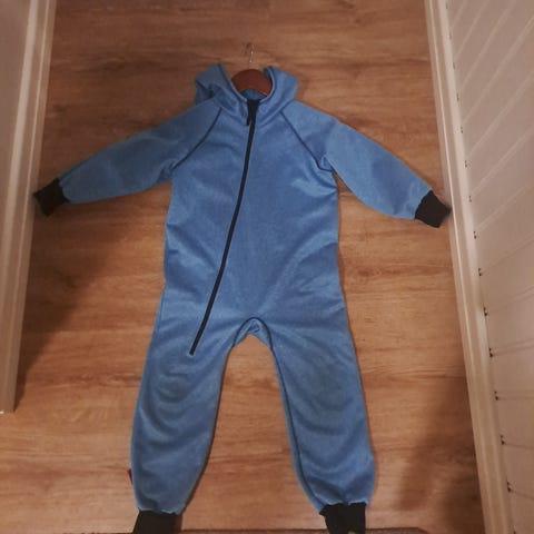 iELM merkkinen softshell haalari koossa 110, mutta sanoisin koon 116 olevan kuvaavampi. Haalarin yleisilme on siisti, polvet tai peppu ei ole pehmentynyt. Hiekasta tms tullut hieman tummentumaa peppuun. Pepussa ja toisen jalan sisäreunan saumasta on koristeommel lähtenyt pienesti purkautumaan, mutta sauma ei aukea siitä koska oikea ommel on tukevasti kiinni.