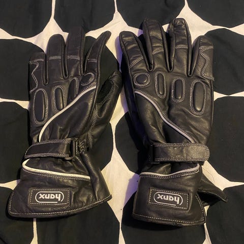 Hanx Moottoripyöräkäsineet koko 11. Käsineissä on suojukset sormissa ja rystysissä. On kohtuu lämpimät ja pitäis kestää vettä