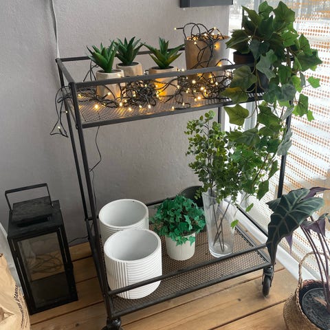 Metallinen hyllykkö, jossa kaksi mustaa tasoa. Hyllykkö soveltuu erilaisten esineiden säilytykseen ja järjestämiseen. Runkona kromatut metalliputket, tasot mustaa materiaalia. Olen maalannut vielä mustalla maalilla ehostaakseen ja renkaat jumittaa välillä eikä 2 pyörää toimii hyvin ja 2 pyörää jumittaa. Huomenna mielellään hakeminen jos joku haluaa ja ainoastaan nouto