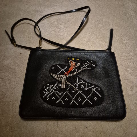 Kuvan olkalaukku käsilaukku. En tiedä onko oikeaa nahkaa, varmaan ei.