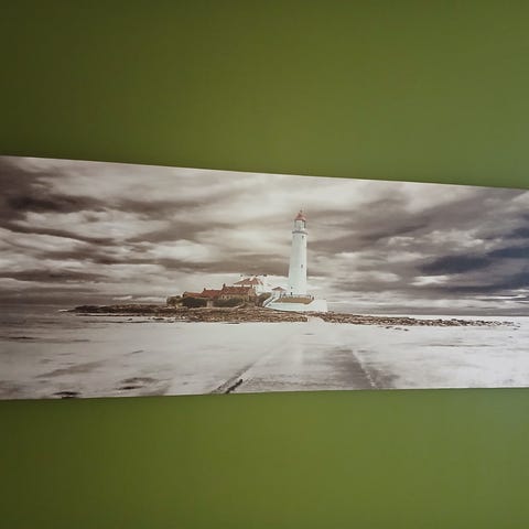 Majakka taulu etsii uutta kotia. Hieno vesi aiheinen taulu. Kehyksessä hienot yksityiskohadat. Pientä käytön kolhua on saanut matkan varrella, siitä kuva. Taulun mitat 157,5cm leveä ja 59 cm korkea.