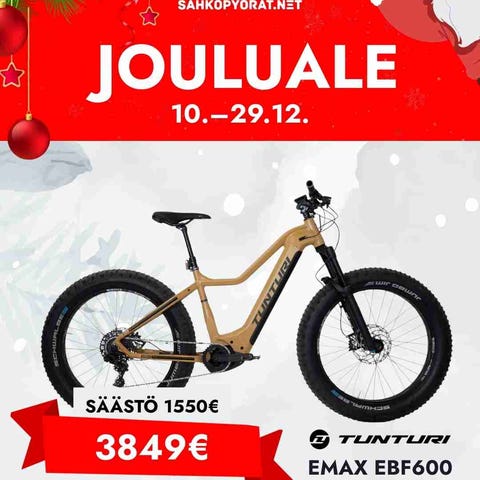 Uutta vastaavassa kunnossa oleva sähköläski ensimmäiseltä omistajalta. Pyörällä ajettu vain 1057 km. Tehokas Shimano EP8 -moottori (85 Nm) yhdistettynä suureen 720 Wh akkuun takaa pitkän kantaman ja vääntöä, joka vie sinut ylös jyrkimmätkin nousut. Manitou Mastodon Comp -etuhaarukka (120 mm jousto). Sram Nx eagle 12 vaihteinen vaihtaja. Renkaat Vee Tire 4,7". Runkokoko L eli käy 180 - 190 cm kuskille. Satula vaihdettu parempaan Ergonin satulaan sekä ohjaustanko Racefacen pikkusen isommalla nousulla olevaan. Tupet on myös Ergonin tupet. Pyörässä myös tehokas 2000 lm ledivalo joka saa virran suoraan akulta. Lisää tietoja https://www.vantaansahkopyorat.com/product/392/silverback-s-electro-diamond-explorer-sahkoavusteinen-fatbike