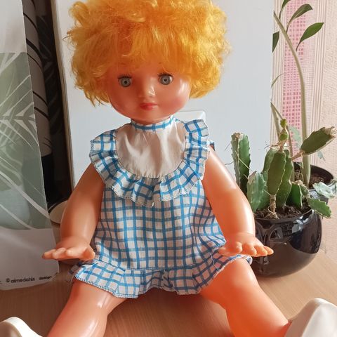 Vintage nukke Anton. Korkeus 40cm. Vartalo, kädet, jalat ovat muovia, kumipää. Alkuperäiset vaatteet. Valmistettu Venäjällä Neuvostoliiton aikana, noin 1980-luvun alussa. Nouto.