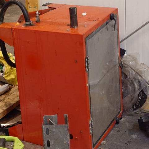 Noin vuoden vanha kolme säiliöllistä puhalleltu hiekkapuhallus pistooli + lähes täysi astiallinen puhallussoodaa.