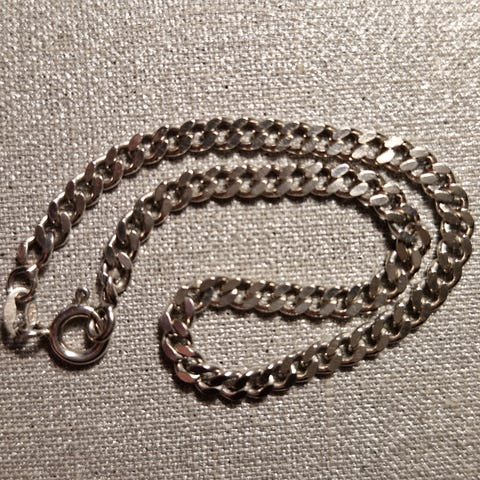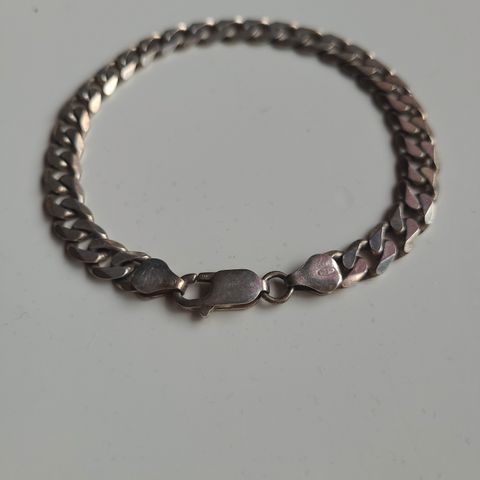 Panssariranneketju sterling hopeaa, jossa leima 925. Pituus 20 cm, leveys noin 4 mm.