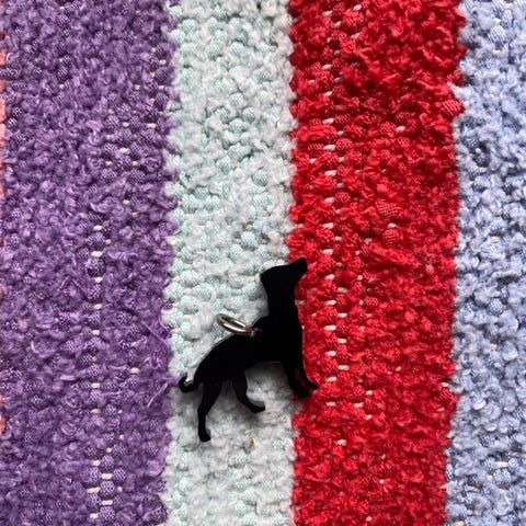 Keltaisilla raidoilla, tummansinisillä pienillä koirakuvioilla somistettu käyttämätön DOGSTRIPE joules-pusero, koko 36. Puserossa on pitkät hihat, pyöreähkö venemallinen pääntie, materiaali 100 % puuvillaa.