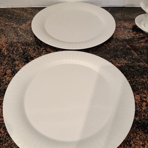 Arabian Virva setti missä kaksi tarjoilu lautasta sekä puuro kulho ikäisekseen mielestäni hyväkuntoiset, en löydä rikkoja eli jos jotain on niin pientä, voi vähän käytönjälkeä näkyä, en uskalla alkaa tiskaan etten särje.. Lautasten koot pituus/leveys: vajaa 24x vajaa 13cm sekä teilu 27x vajaa 20cm. Vain nouto ja käteismaksu!! Kuuntelen myös tarjouksia