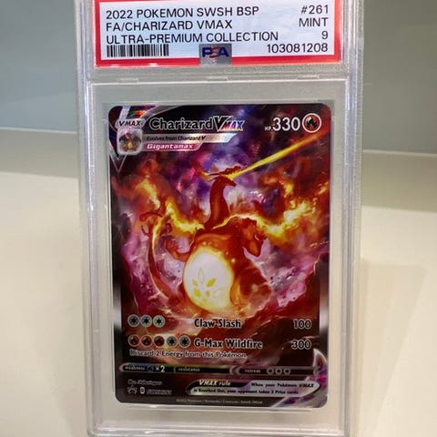 Arvioitu Pokemon kortti, paras PSA arvosana. Kuvassa näkyvä metallireunainen suojus ei kuulu kauppaan.