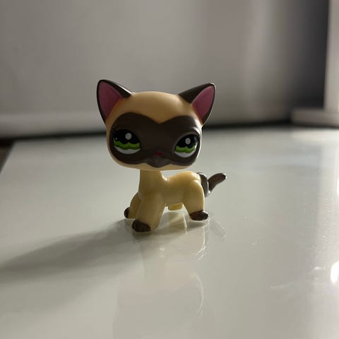 Littlest Pet Shop -merkkinen kissan figuriini, valmistettu muovista. Pieni koko, beige väritys, sopii keräilyyn tai leikkeihin.