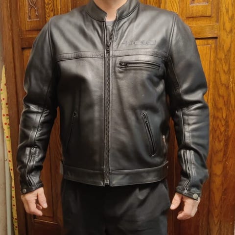 Lindstrands nahkatakki koko 52. Hyvät suojat ja istuu hyvin päälle. Kerran kokeiltu eli kunnoltaan lähes kuin uusi.