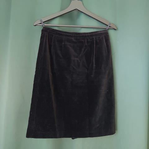 Samettihame Marks&Spencer. Koko 36. Vyötärönympärys 63 cm, lantionympärys 90 cm, pituus 41 cm. Joustava materiaali: 90% polyesteri, 10% elastaani.