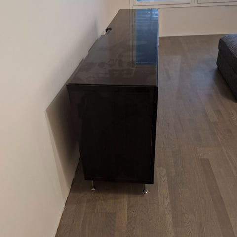 Siisti valkoinen pikkuvikainen tv taso. Tason päällä lasilevy, ehjä! Kaapin ovissa pieniä kolhuja, kuvat erikseen.