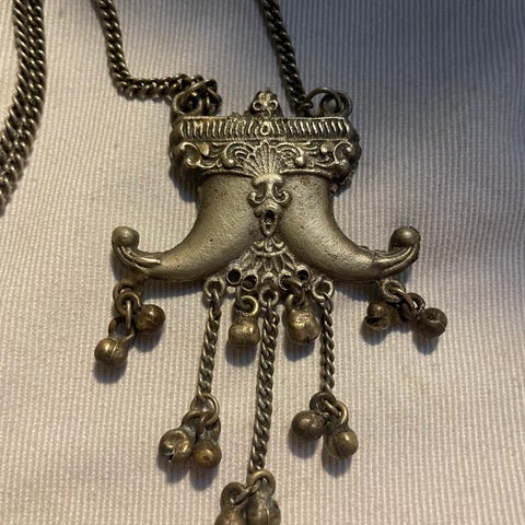Viikinki henkinen kaulakoru pitkällä riipuksella. Hopean värinen. Kunto hyvä. Nouto Nöykkiö tai postitus kuluja vastaan.