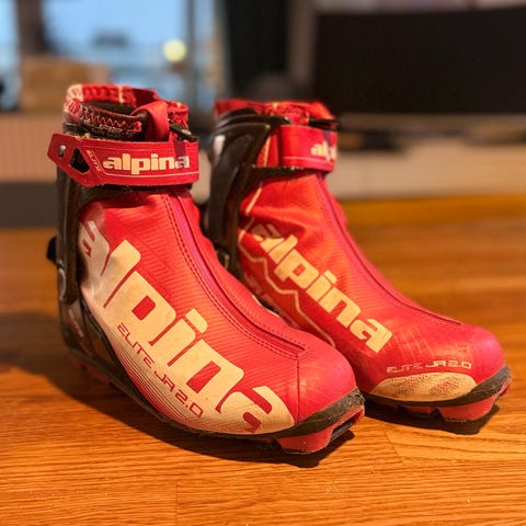 Kunnoltaan ok kuntoiset Alpinan kisamonot. Käytetty myös rullahiihdossa, joten pohjassa kulumaa.