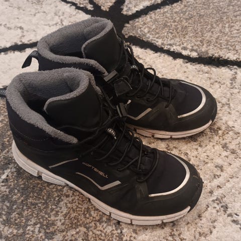 Jalkapöydän yli menevässä kuminauhassa tarrakiinnitys. Kunto yleisesti ottaen erittäin hyvä.