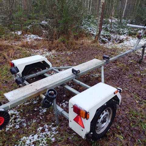 Metallinen vaunu. Sopii esim veneen nostoon kiskojen päällä.