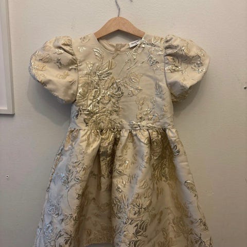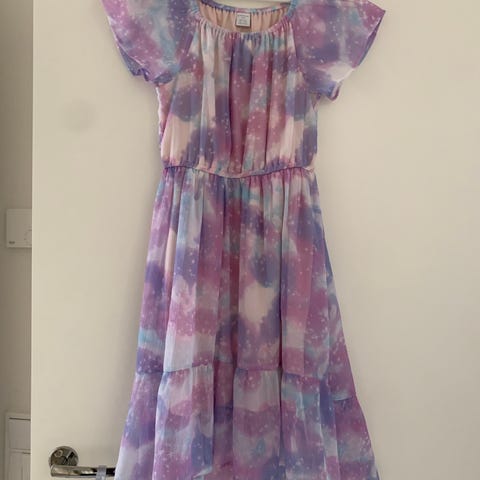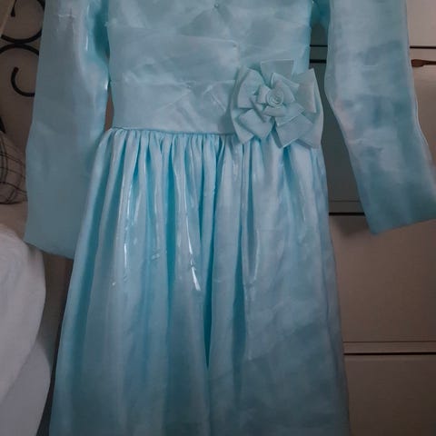 Kahdesti päällä ollut tummansininen juhlamekko. Koko 128.