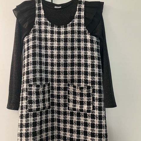 Hyväkuntoinen tyttöjen juhlamekko ja pusero. Myydään yhdessä. Mekon koko 146 ja puseron 8-10v. Puseron hihat ommeltu lyhyemmiksi. Kuvassa tytön pituus on 160 cm.