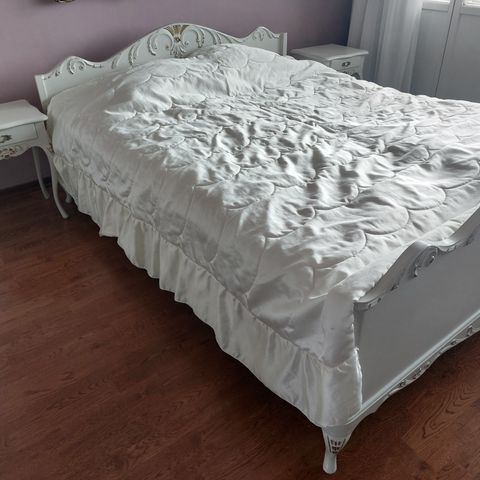 Kuvanmukainen talonpoikaisrokokoo sänky, joka on kesämökillä käytössä eli testattu toimivaksi vielä vuosiksi eteenpäin : )