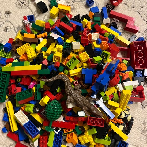 Jäätävän isoja legoja. Isoimman palikan ulkomitat 12,5 x 6 x 4,5 cm. Yhteensä 63 osaa.