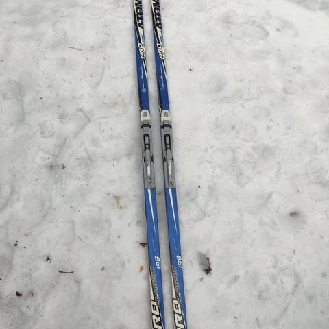 Sukset käytetyt, mutta ehjät. Pohjat vaatii hiontaa ja huoltoa. Vanhat pitoteipit pohjissa. Myös naarmuja löytyy, muttei mitään käyttöä haittaavia.