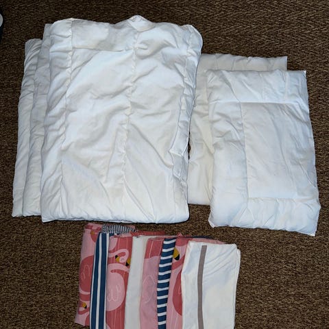 Lasten peitto, tyyny, pussilakana ja tyynyliina