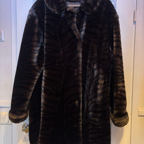 Kauniin ruskea tekoturkistakki. Kokoa en löydä, mutta S-M kokoa käyttävälle sopiva. (Itse olen xs-kokoa ja minulle aivan liian iso.