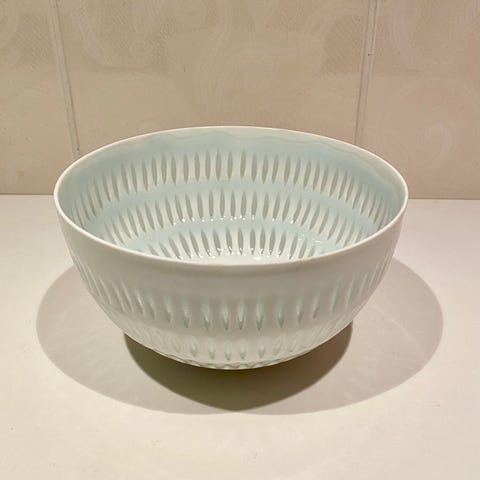 Erikoisempi riisiposliinikulho, kunnoltaan erinomainen.