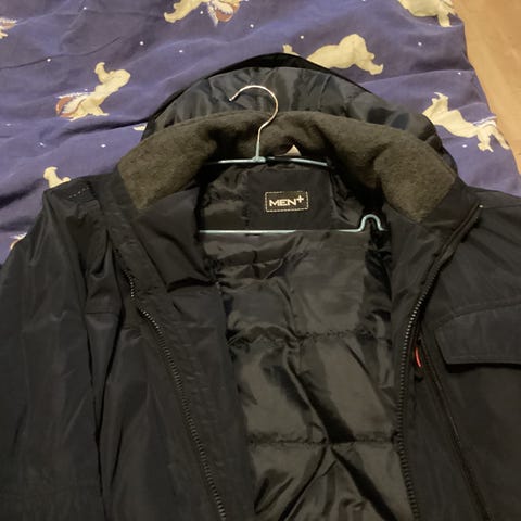 Lähes käyttämätön, musta, karvavuorinen pusakka kokoa XXXL, pituus 75 cm, hartialeveys 64 cm ja hihan pituus kainalosta. Merkki "rekkamiesten" Asfeir Flatemo Transport A/S, Norge. Materiaali 53/47 % puuvillaa/polyesteriä, hihojen toppavuori ja takkiosan karvavuori 100 % polyesteriä.