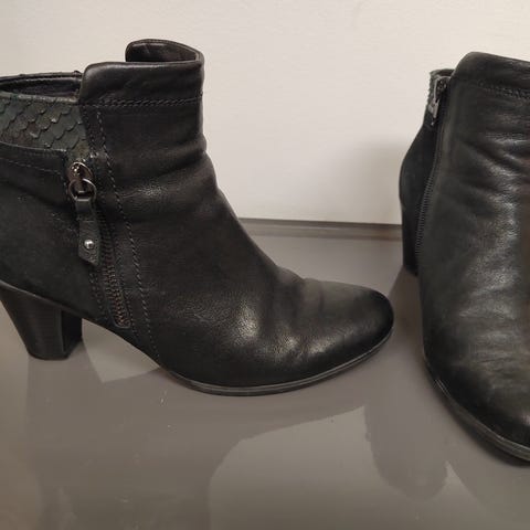 Gabor nilkkurit, valmistettu nahasta, ruskea väri, koko 38. Saappaissa on sivuvetoketju helpottamassa pukemista. Malli sopii arkipukeutumiseen ja tarjoaa suojaa viileämmissä olosuhteissa.