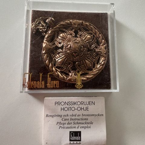 Hyväkuntoinen pronssinen Kalevala Korun Ahvenanmaan riipus. Halkaisija 6,5 cm.
