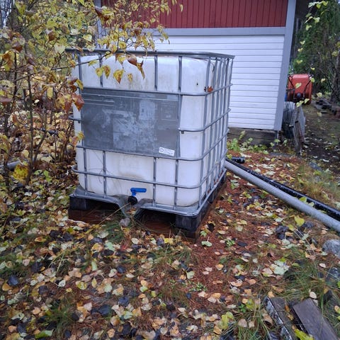 IBC Säiliö 1000L. Sopii moneen käyttöön, myös kasvihuoneelle vesivarastoksi.