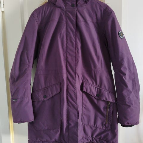 Väri on ehkä lähinnä luumu. Vetoketju hinkannut tuulisuojaan kulumaa jota korjattu ( ei näy ulospäin) muuten vähän käytetty.