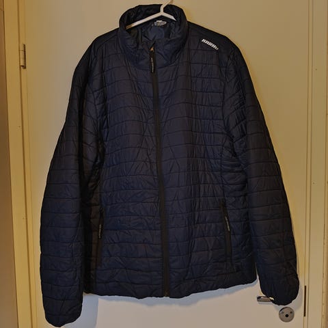 Hyväkuntoinen pesty Karhun kevyttoppatakki. Väri tummansininen/khaki/musta. Ei huppua. Alhaalla kiristysnarut. Koko L mutta minusta väljähkö malli. Kainalo-kainalo 64cm, niskasauma-hihansuu 87cm ja takaa niskasauma-helma 77cm. Viimeisessä kuvassa näkyy pieni punainen piste joka ei irronnut pesussa, tuskin huomattava.